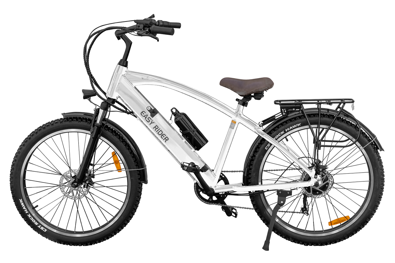 Make sure you don’t wipe out with the large 26 x 2.4 tires on the Easy Rider. It’s extra wide and thick tread makes it so even if you are riding in the rain you will have the utmost control.