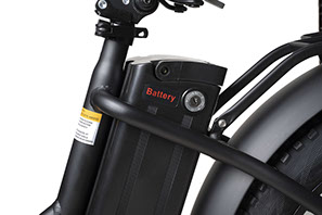 With the Daymak Easy Rider, you get a 48V lithium battery pack that fits seamlessly into the frame of the bike. It also comes with a bottle holder built on to it! Bonus!