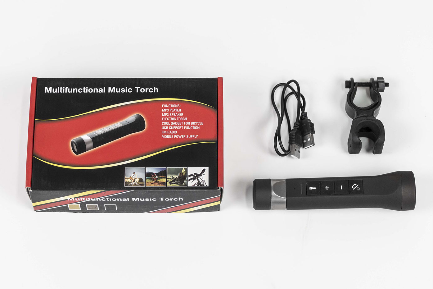 The Multifunctional Music Torch seamlessly integrates an MP3 player, MP3 speaker, electric torch, FM radio, and mobile power supply, catering to your entertainment, illumination, and charging needs.