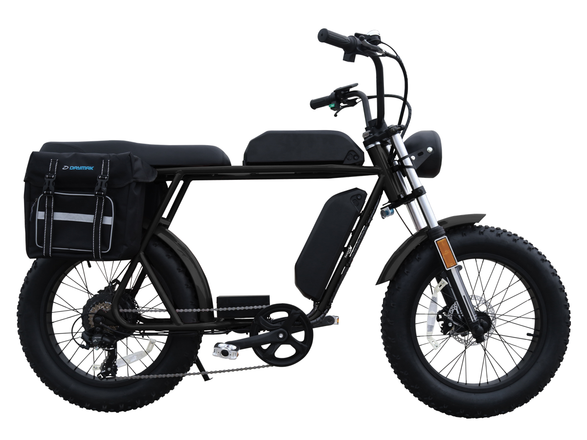 The Daymak Phoenix comes with Saddlebags that gives you the extra storage space for carrying the important stuff like your chargers, a bike lock, or anything else you may need on your commute. A perfect addition to a perfect bike.