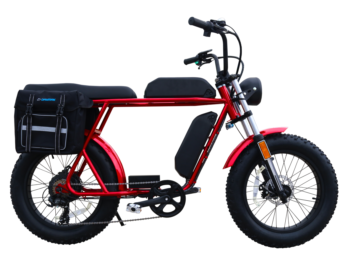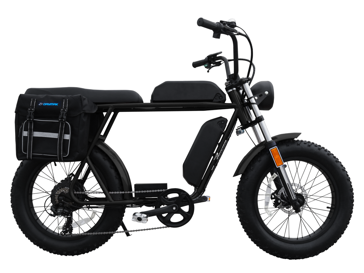 Now introducing the all new Phoenix electric bike from Daymak. This truly one of a kind ebike is an amalgamation of years of innovation that has helped us design this all in wonder vehicle! This utilitarian ebike comes with dual lithium-ion battery packs that give the rider a range of over 60 km autonomously. If you’re looking for storage the Phoenix has got that too. The Daymak Phoenix comes with saddle bags for additional carrying space. With the power of the 500W motor and dual 48V lithium battery packs climb hills with ease and rise to the top like its namesake. Blaze new trails on your own or with a friend with the Daymak Phoenix electric bike now available at your local Daymak dealers.